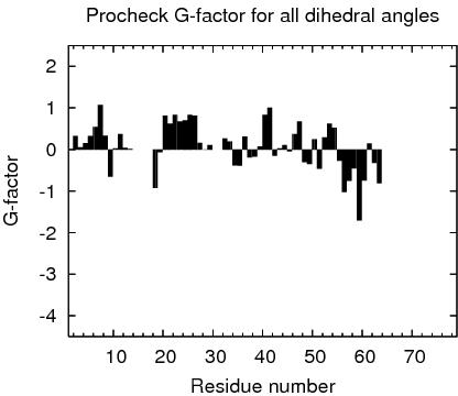 1 With respect to mean and standard deviation for a set of 252 X-ray structures < 500 residues, of resolution <= 1.80 Å, R-factor <= 0.25 and R-free <= 0.28; a positive value indicates a 'better' score