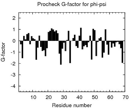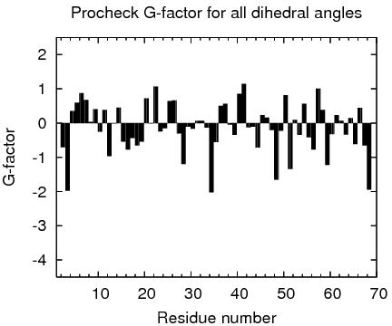 1 With respect to mean and standard deviation for a set of 252 X-ray structures < 500 residues, of resolution <= 1.80 Å, R-factor <= 0.25 and R-free <= 0.28; a positive value indicates a 'better' score