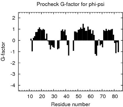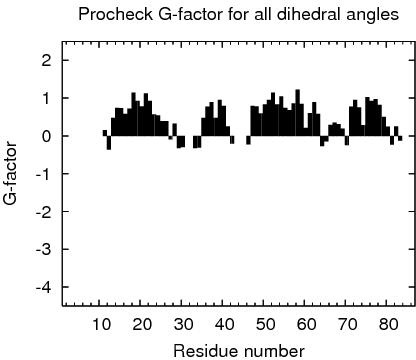 1 With respect to mean and standard deviation for a set of 252 X-ray structures < 500 residues, of resolution <= 1.80 Å, R-factor <= 0.25 and R-free <= 0.28; a positive value indicates a 'better' score