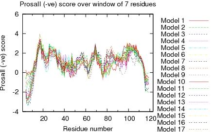 | Program | Verify3D | ProsaII (-ve) | Procheck (phi-psi)3 | Procheck (all)3 | MolProbity Clashscore |
