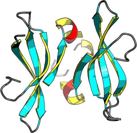 beta strands: 14E-25E, 31R-39R, 45S-51S, 58 -64 , 14E-25E, 31R-39R, 45S-51S, 58 -64