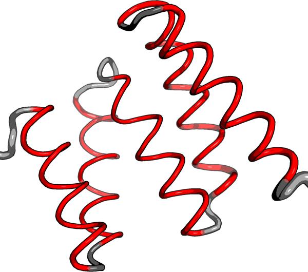 alpha helices: 6A-18A, 22A-35A, 40A-52A, 56A-72A, 76A-89A